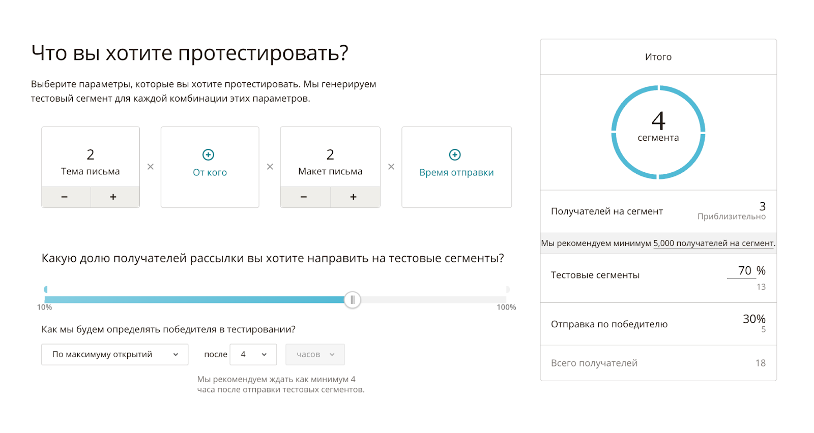 DashaMail предоставляет весь функционал для проведения A/B-тестирования.