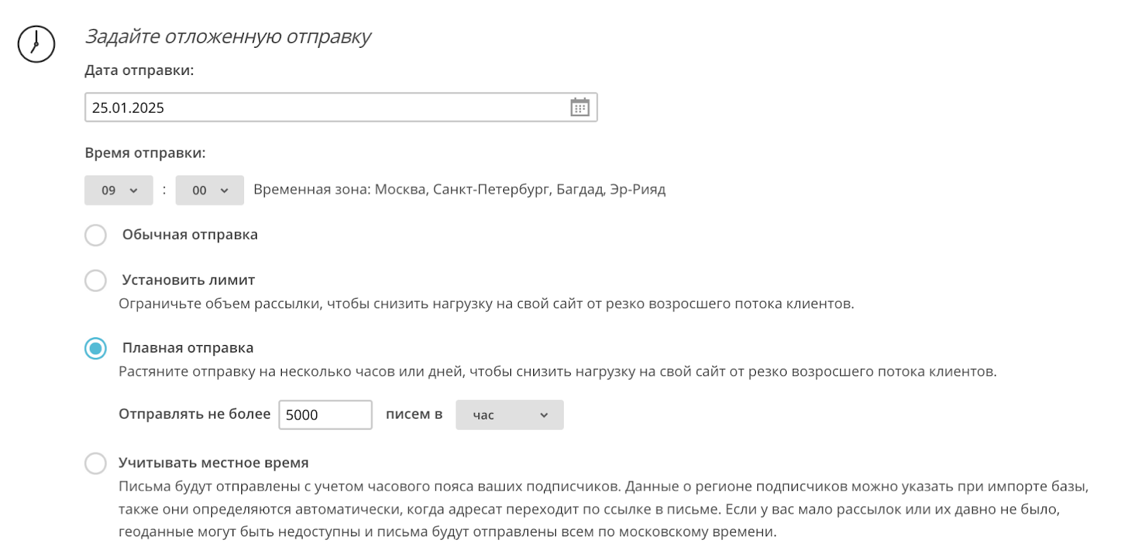 Планируя рассылку заранее, вы избежите аврала и сможете переключиться на другие задачи, зная, что ваша рассылка уже работает.