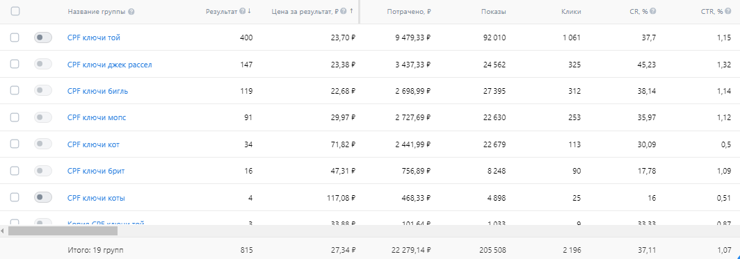 - Собаки: от тойтерьера и мопса до корги и шпица — каждому сегменту мы создали уникальные креативы с персонализированными ключевыми словами. Результат: CTR вырос на 23%.