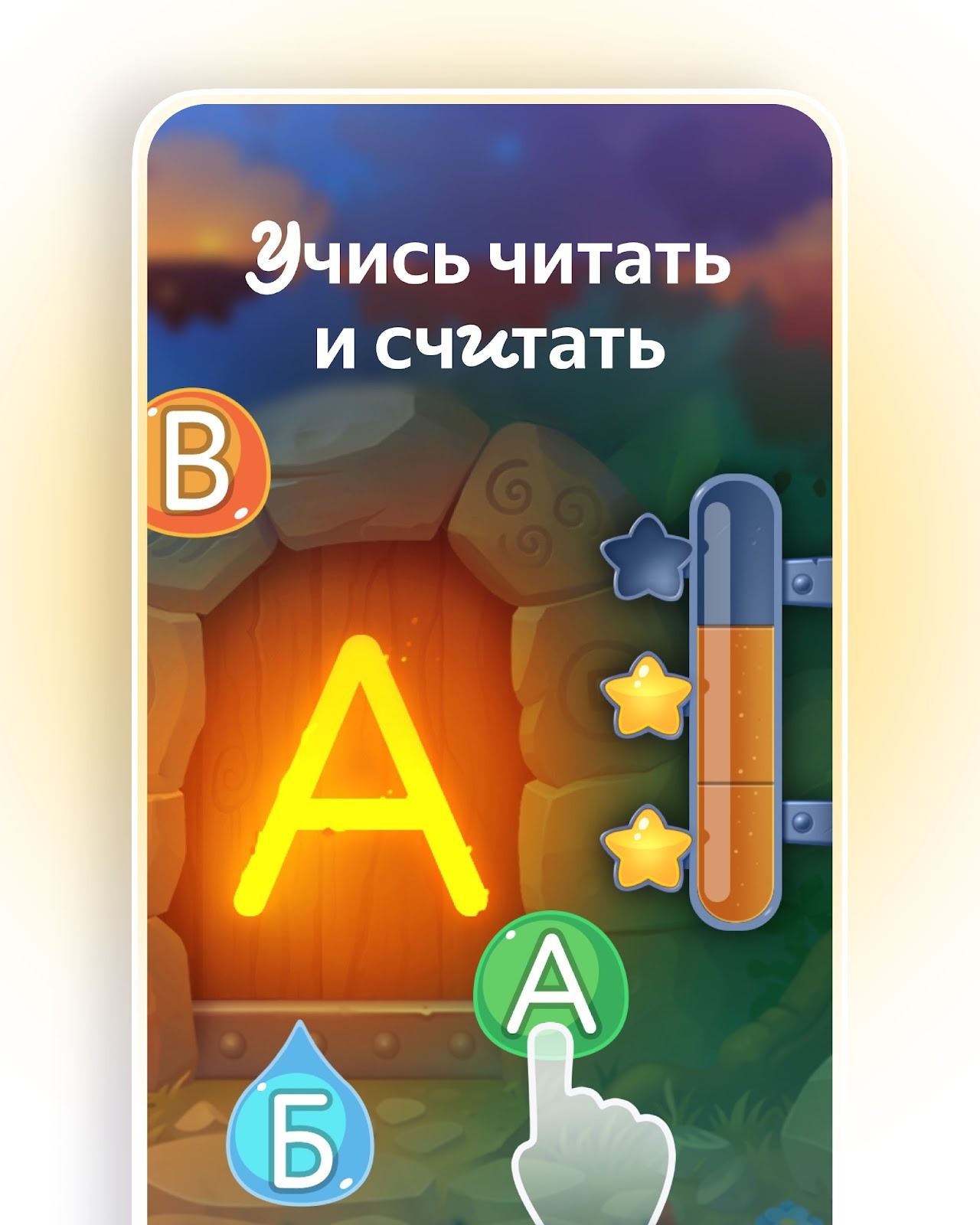 «Сказбука» от Яндекс.Детям направлена на познавательное развитие, включая пазлы, игры на повторение звуков, счет и изучение букв. К особенностям приложения относится то, что оно уведомит ребенка, когда нужно сделать перерыв.