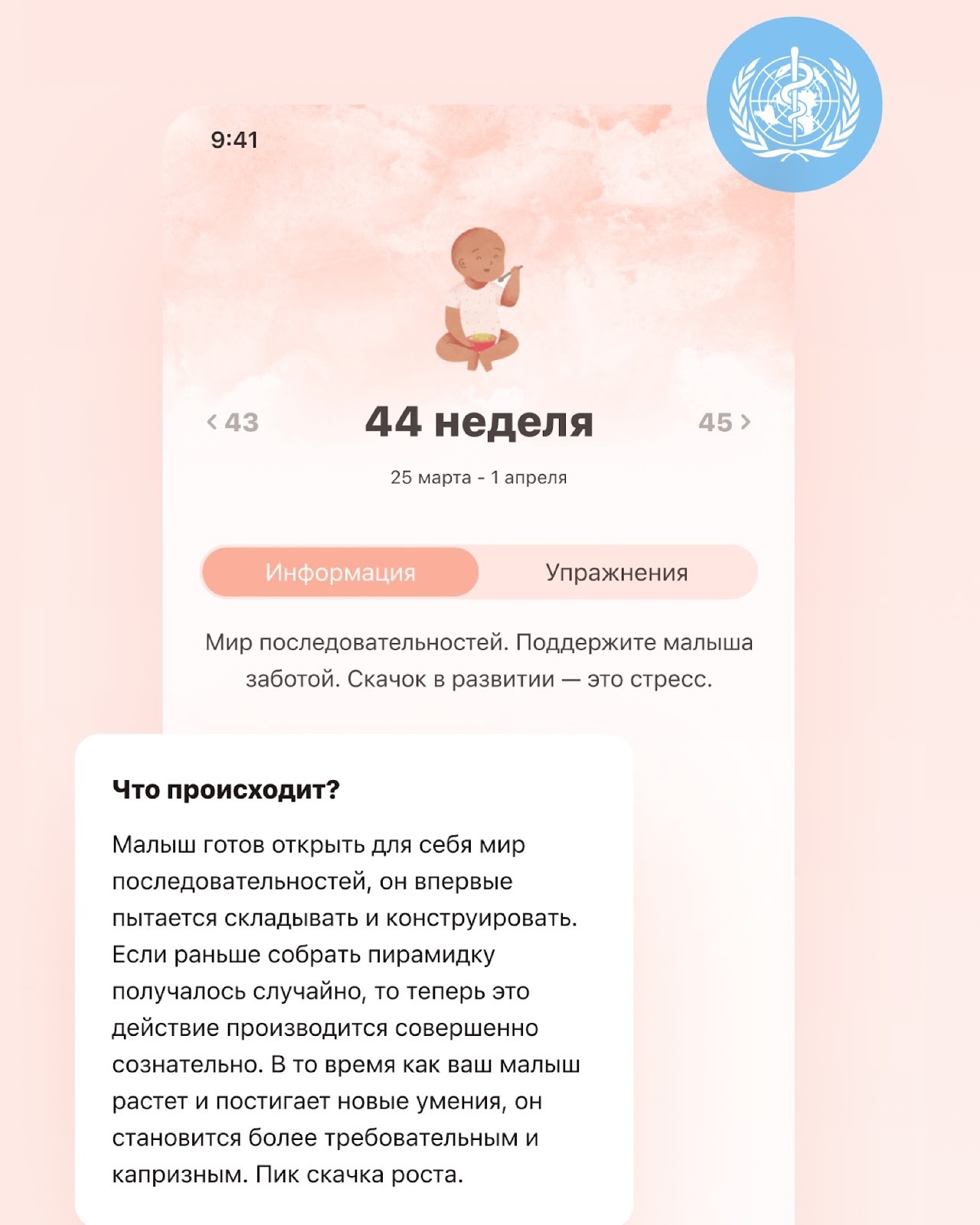 Приложение «Скачки роста» — это персональный гид в мире раннего развития до 2 лет. Вы узнаете, чем занять карапуза, как правильно оценивать его успехи по возрастным нормам, сможете наладить режим сна и прикорм.
