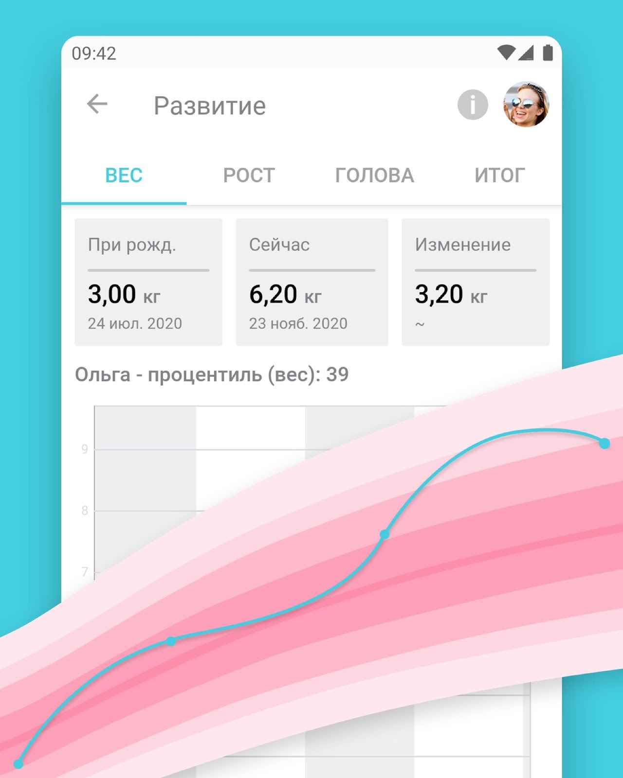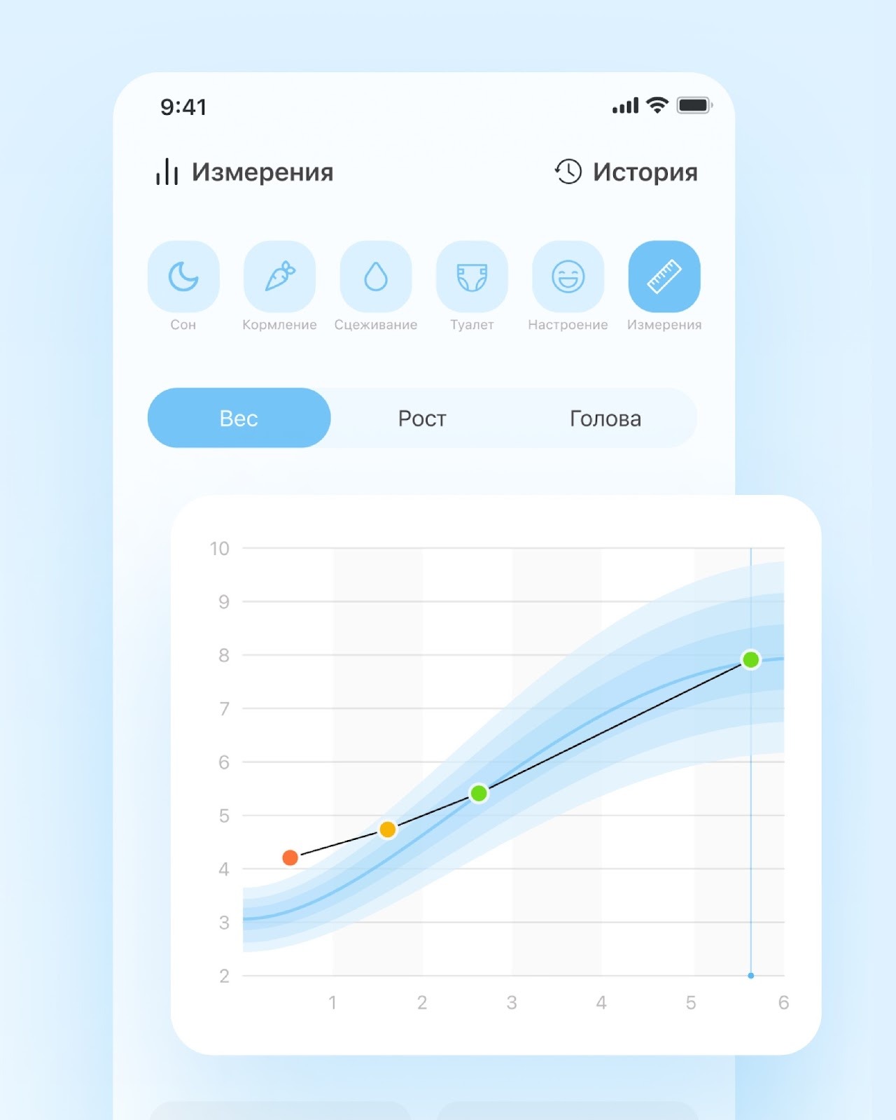 Трекер. Наблюдение за здоровьем: вес и рост, обхват головы, наличие заболеваний у ребенка, прививки, график сна. Фиксируйте даты посещения врачей, получайте рекомендации;