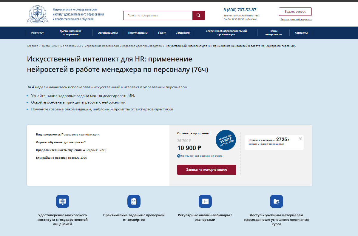 ⚡ Искусственный интеллект для HR — НИИДПО — семинар по практическому применению нейросетей в ключевых HR-процессах.