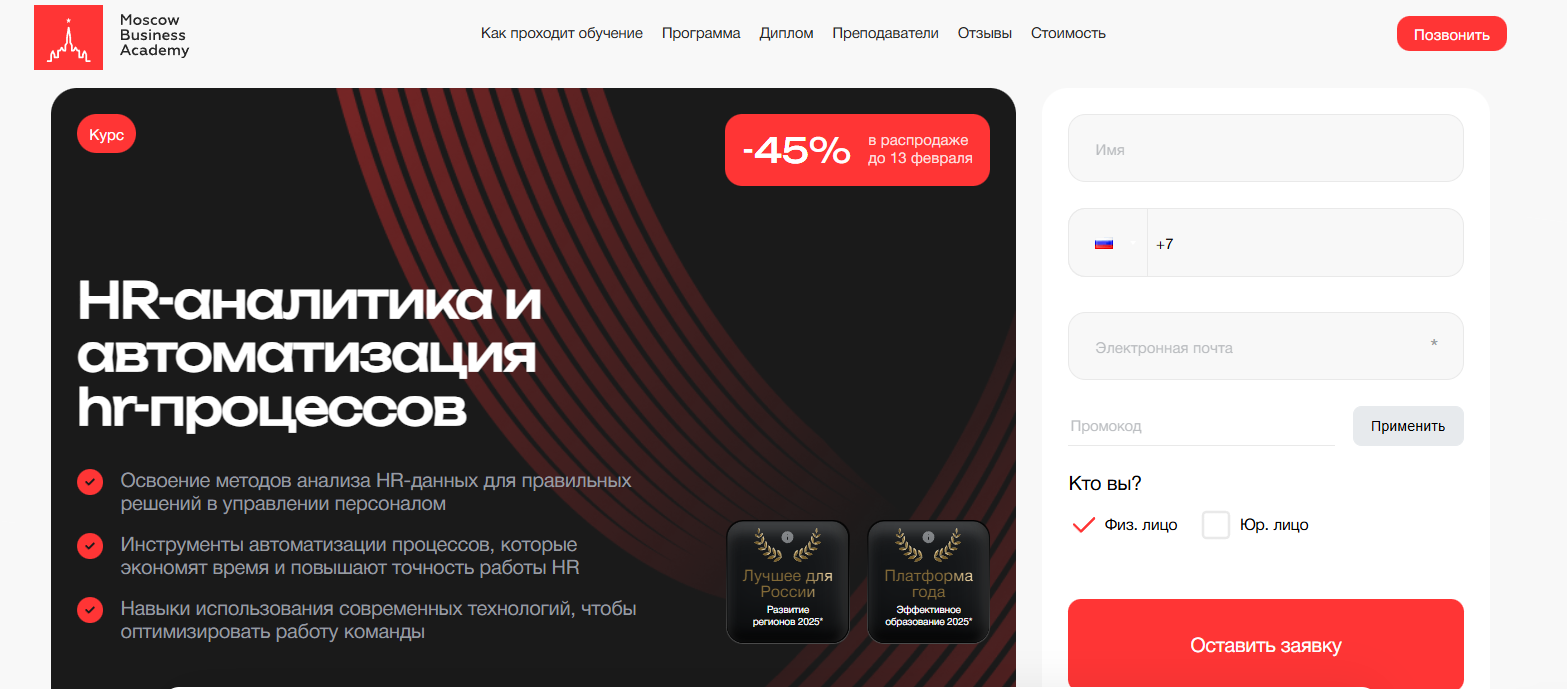 HR-аналитика и автоматизация HR-процессов — Moscow MBA — программа включает модули по аналитике и автоматизации с использованием искусственных интеллектов.