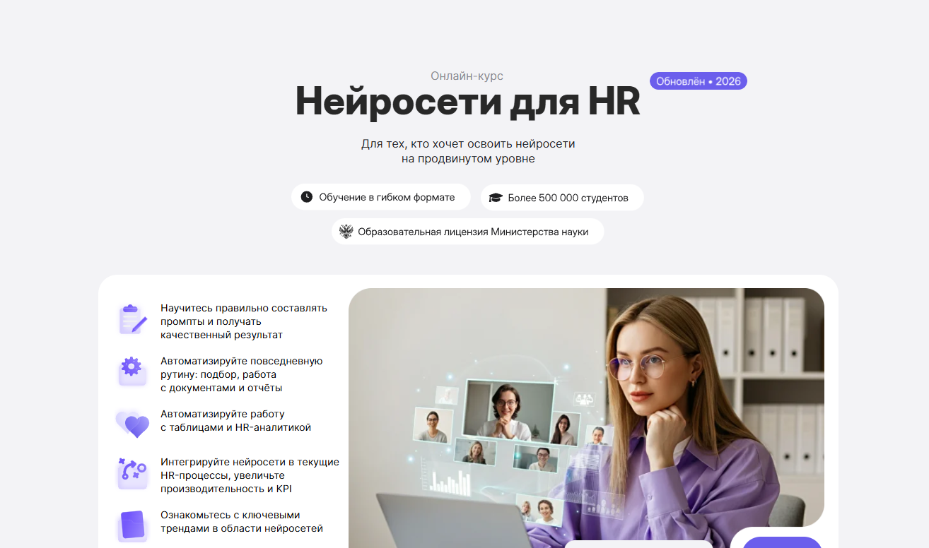 Нейросети на практике: для себя, работы и бизнеса — освоите более 100 нейросетей за 2 месяца, получите удостоверение о повышении квалификации, годовую поддержку кураторов и доступ к обновлениям навсегда.