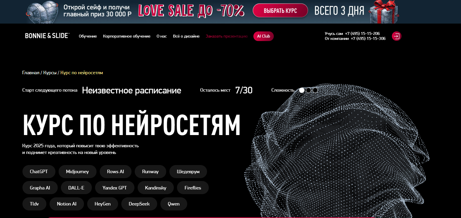 AI курс — Bonnie&Slide — курс по применению искусственных интеллектов для создания презентаций и визуального контента.