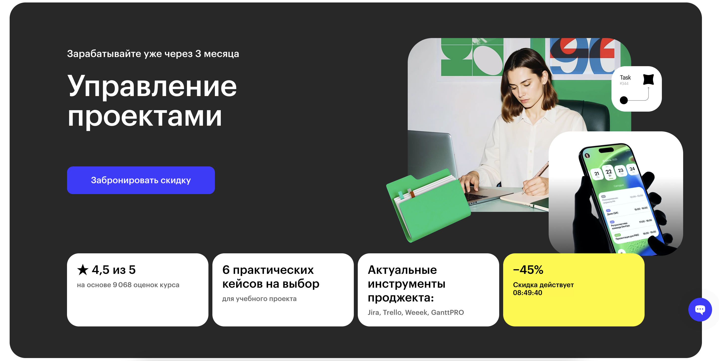 Менеджер проектов — Гикбрейнс — курс для тех, кто хочет освоить профессию руководителя проектов в ИТ. Программа охватывает методологии управления, работу с проектными командами и инструменты цифрового планирования.