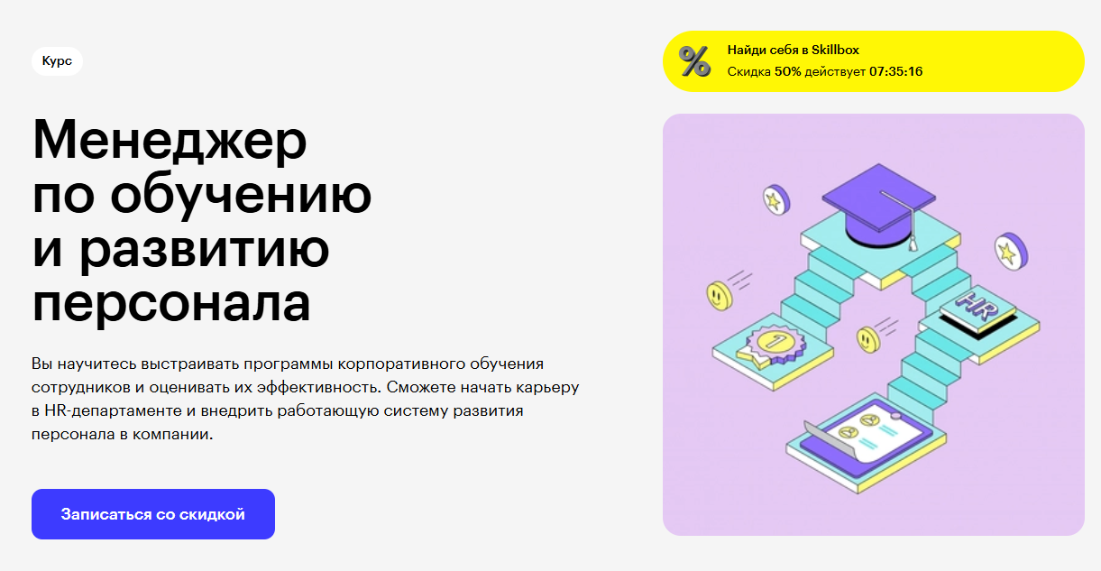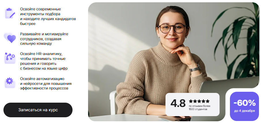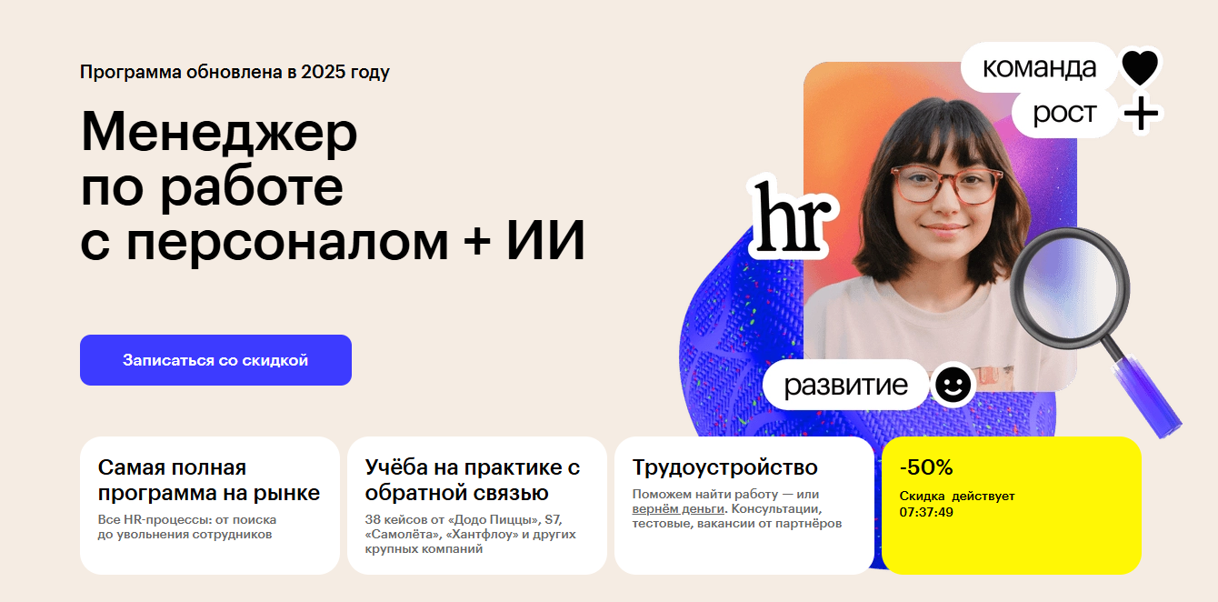 - Обучение ведут эксперты-практики с опытом работы более 5 лет в сфере HR.