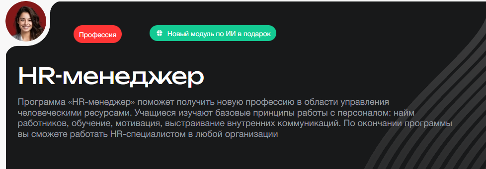 - Skillbox (Скиллбокс) — Менеджер по работе с персоналом + ИИ: расширенный модуль по применению ИИ и проектов от компаний.