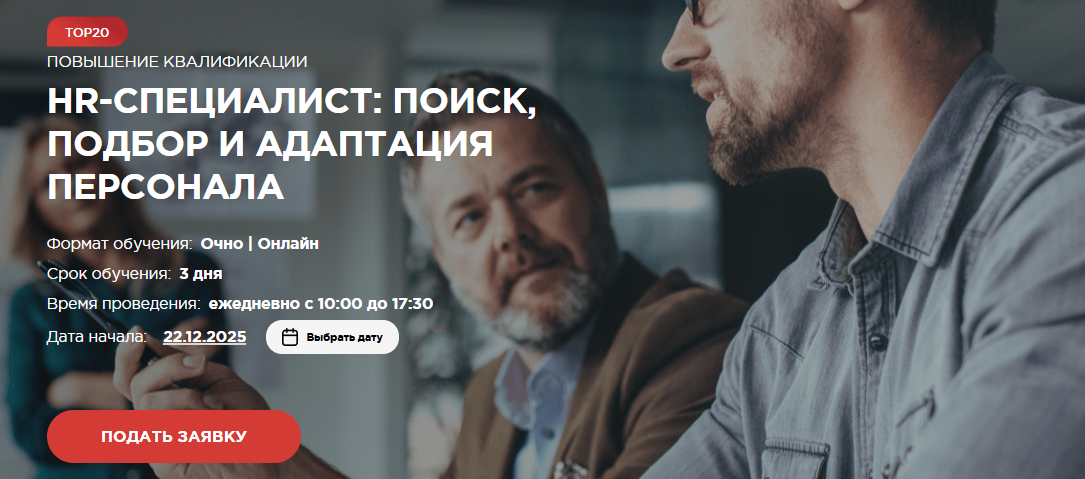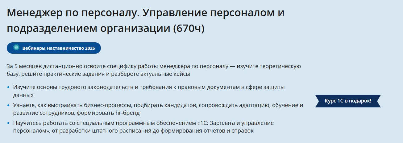- Фокус на практические навыки в сферах HR и кадрового менеджмента.