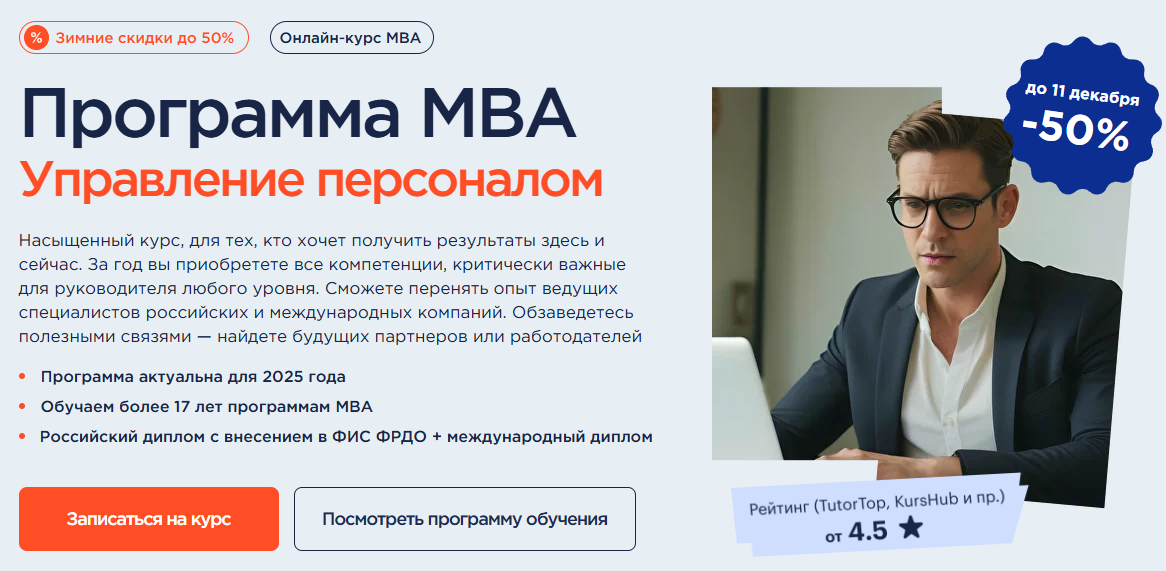 - Mосковская Бизнес Школа — HR-специалист: сверхкороткий трёхдневный интенсив с живой практикой и разбором кейсов.