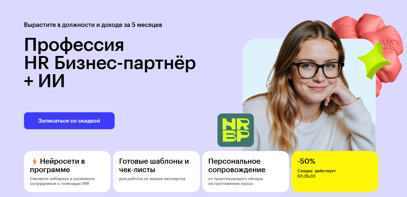 - Профессия HR бизнес-партнёр + ИИ — Skillbox (Скиллбокс)