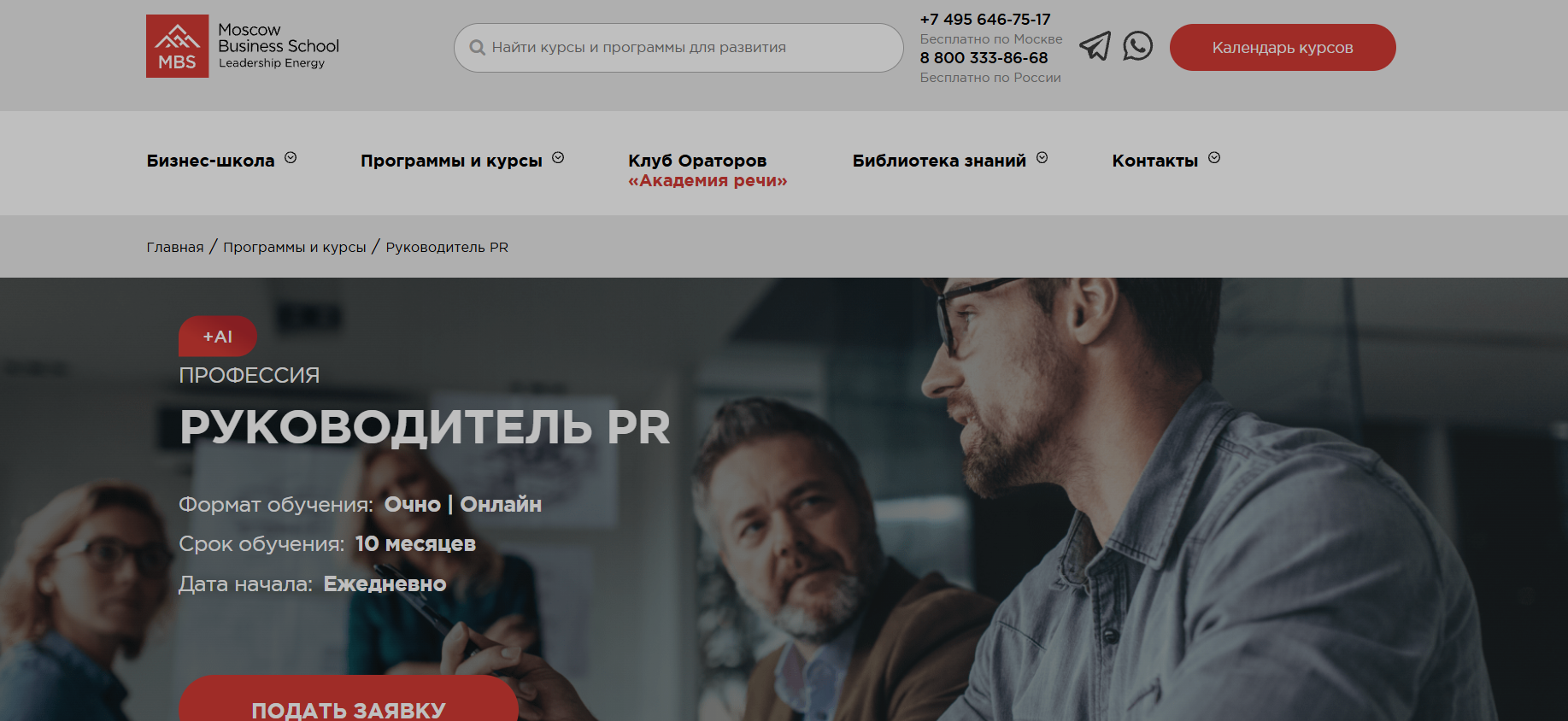 Mосковская Бизнес Школа – Руководитель PR: Гибкий формат (онлайн+очно), встроенный доступ к дополнительным курсам, модуль по ИИ, карьерная поддержка.