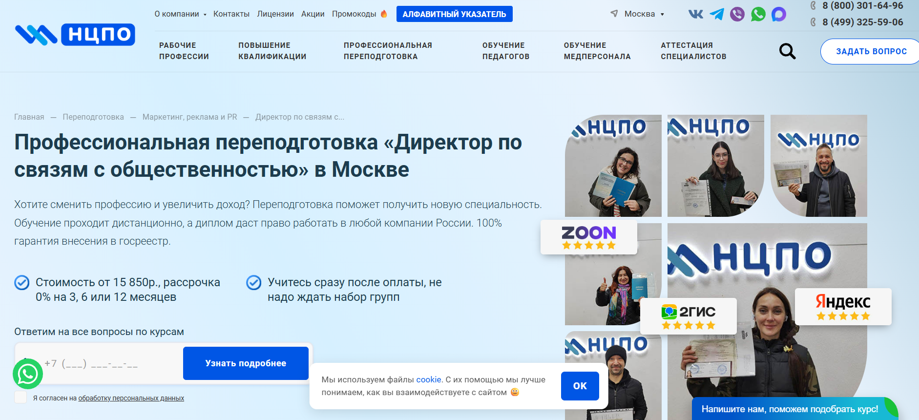 НЦПО: Полностью дистанционный формат, диплом с регистрацией в ФРДО, обучение без базовой подготовки, бессрочный доступ к материалам.