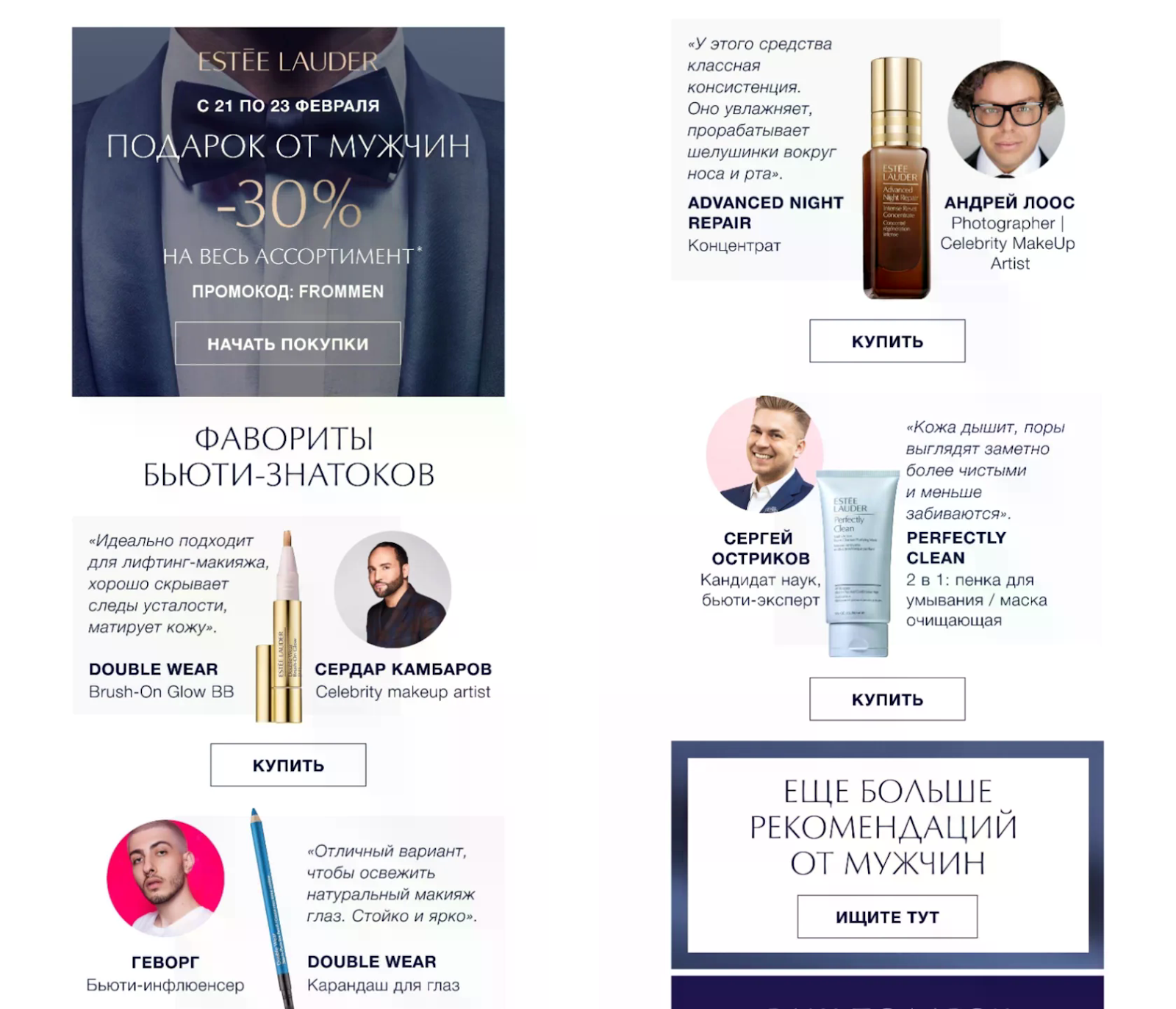 Для этого не нужны сложные сценарии. В системе уже есть данные: пол, история покупок, клики, активность. Поведение на сайте можно использовать для персональных рекомендаций и сделать письмо действительно релевантным.