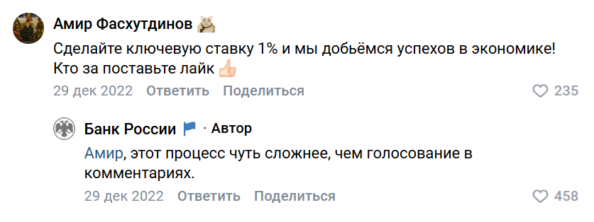 Так, несколько лет назад завирусились ответы Банка России в соцсетях, который неожиданно начал давать ответы на самые провокационные вопросы. И это действительно было смешно.