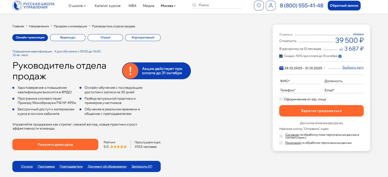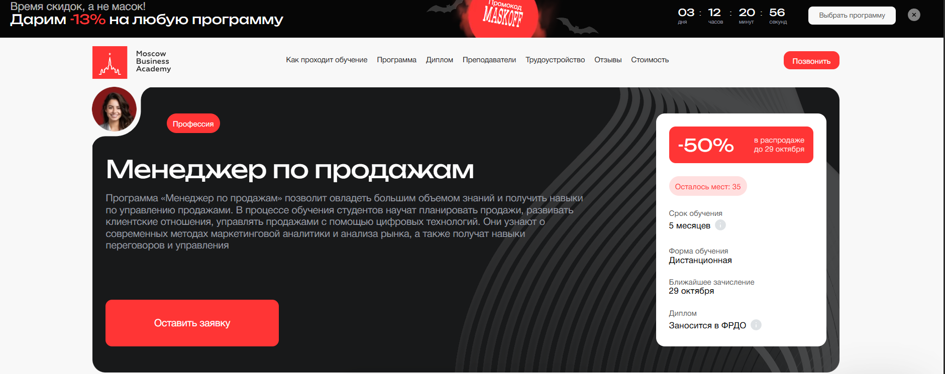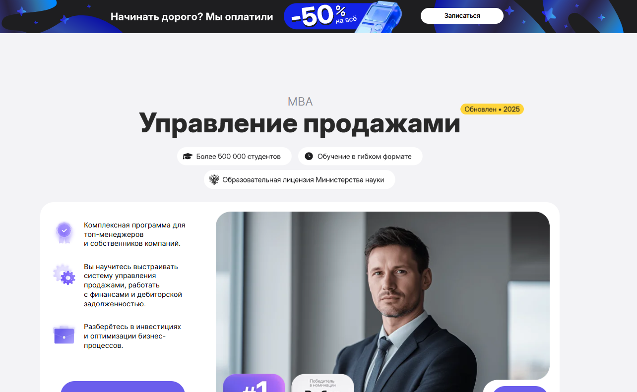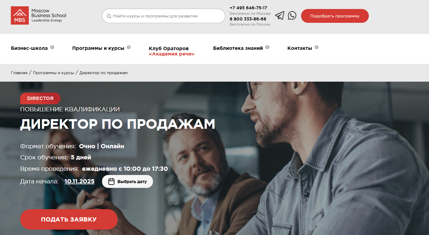 Сайт: https://moscow.mba/programs/profession/online/sales-manager