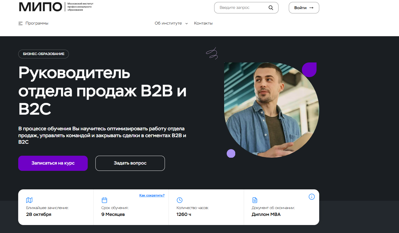 ⭐Руководитель отдела продаж B2B и B2C от МИПО — программа MBA с дипломом международного образца для владельцев бизнеса и топ-менеджеров компаний.