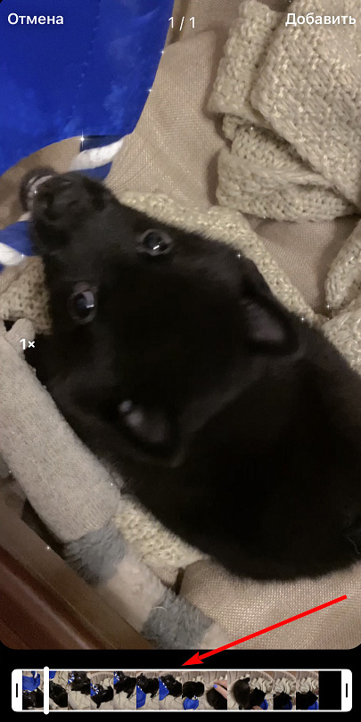 Выберите видео из архива смартфона. При необходимости вы можете сразу обрезать видео до нужной длины.
