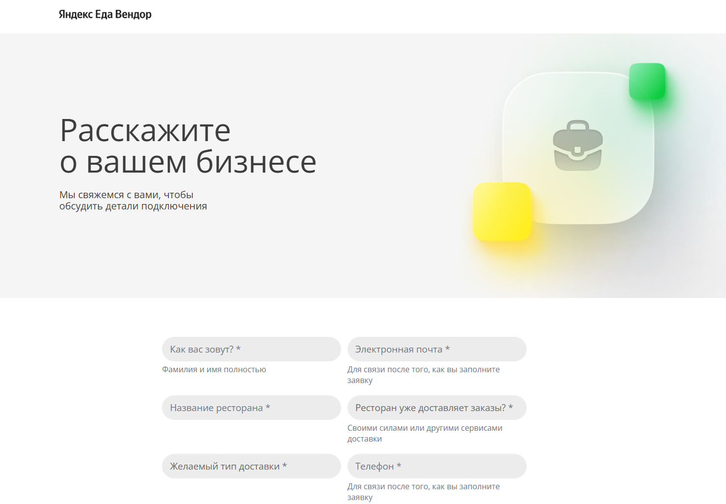 Заманивают партнёров как раз на широкую аудиторию всей экосистемы Яндекса — пишут, что она 110 млн человек ежемесячно. Также Яндекс Еда предлагает очень много рекламных инструментов внутри платформы и разные программы поддержки и развития для партнёров.