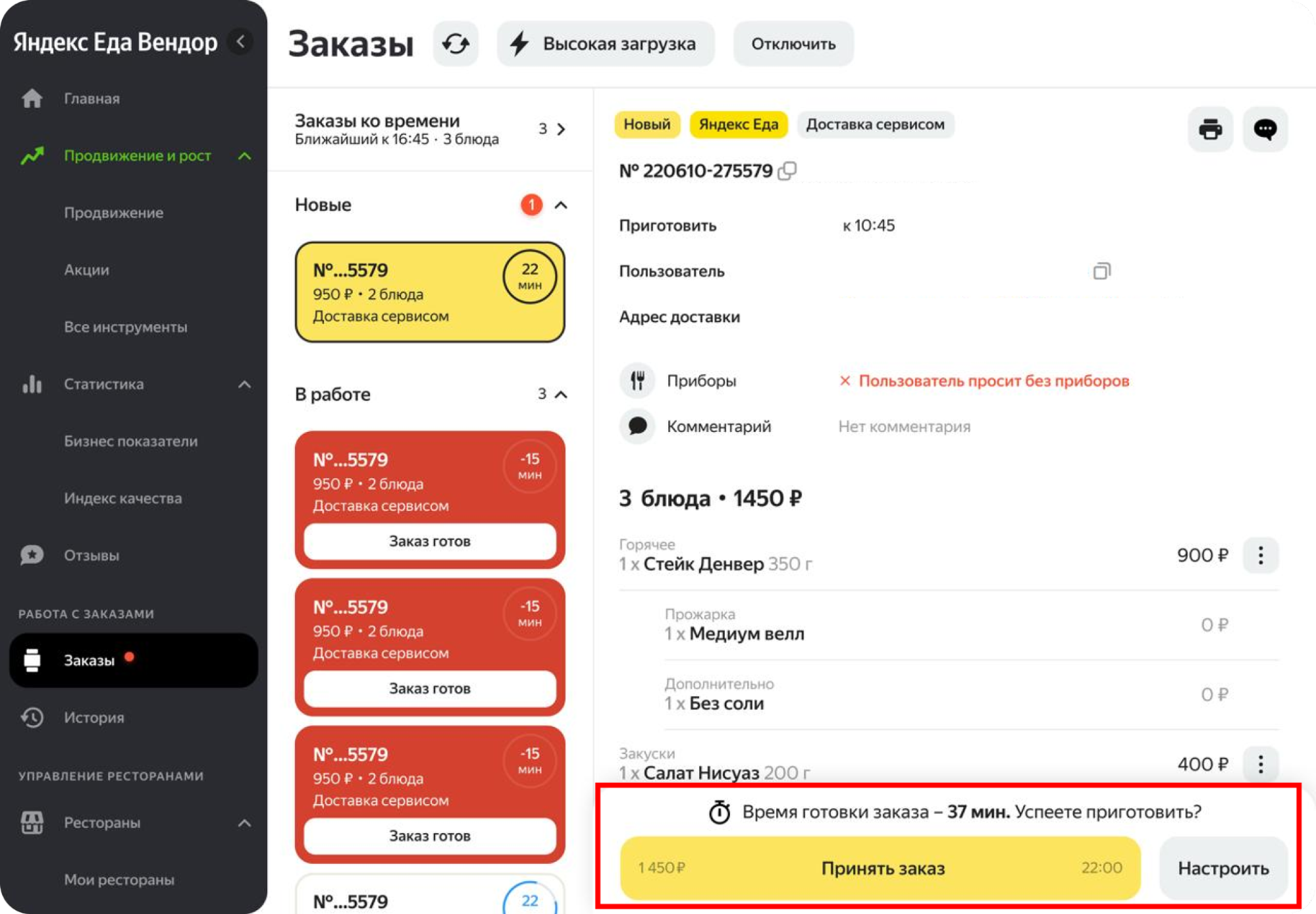 Расчёт обновляется регулярно, поэтому всегда будет актуален. Время приготовления видно пользователям. Чем быстрее ресторан готовит, тем больше вероятности оказаться выше в ленте. Да и в целом пользователи скорее пойдут туда, где привезут быстрее.