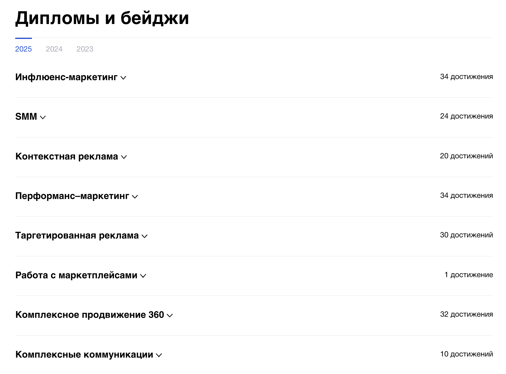 На основании вышесказанного мы сформировали свой портфель на 2025 год: Рейтинг Рунета, АКАР, Маркетинг TECH, Yookey и Workspace.