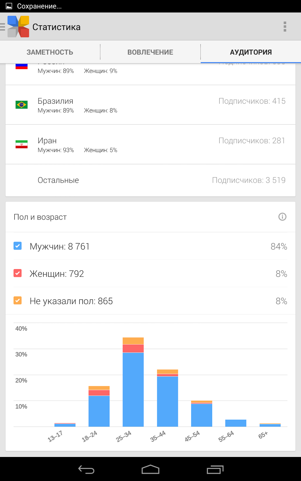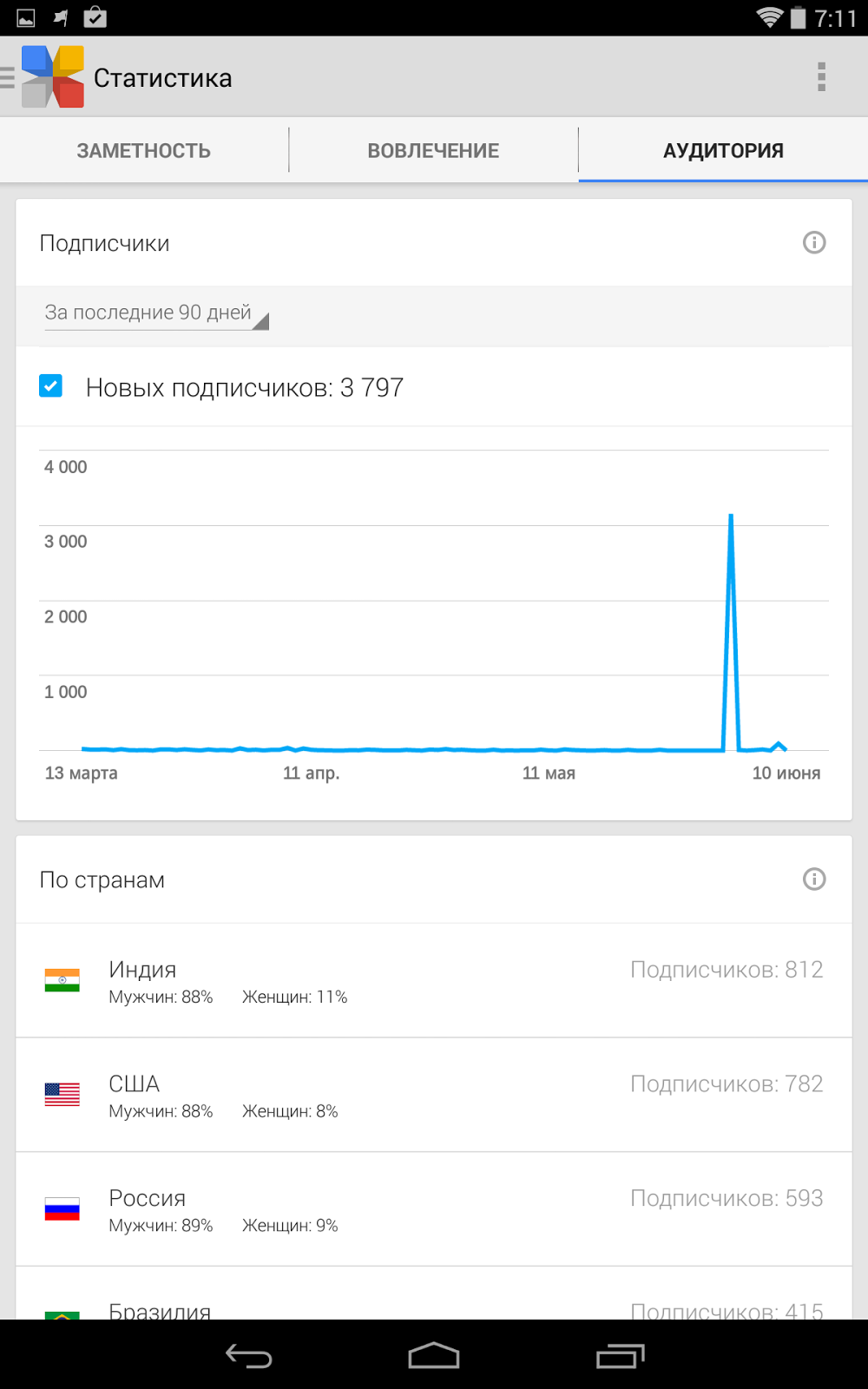 Последняя вкладка - демография. Тут можно оценить количество индусов которые почему-то подписались на мой паблик, который я виду ради фана. Также, здесь отображается общее количество подписчиков.
