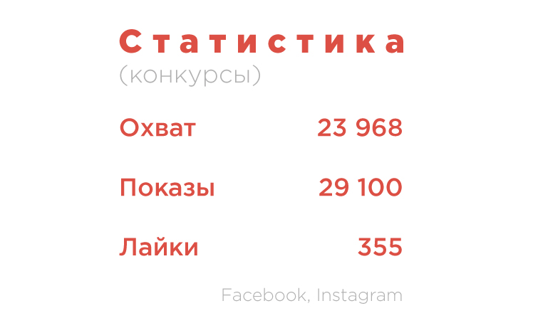 В конкурсах приняло участие более 200 человек: конкурсы проводились в начале кампании, поэтому показатели вовлечённости получились довольно низкими. Пользователи делали репост+упоминание друга в комментариях, а далее мы с помощью генератора случайных чисел выбирали победителей: 12 человек получили наиболее дорогие билеты в качестве приза.