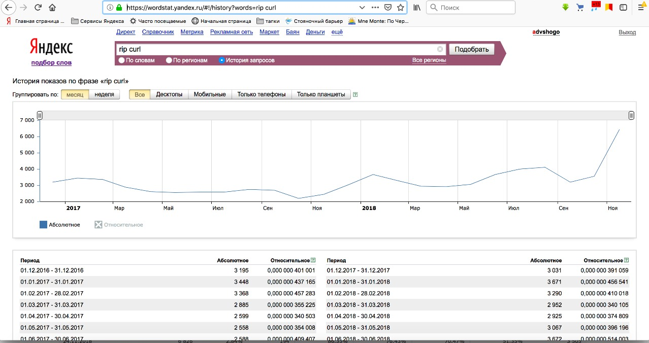 Мы увидели реальное изменение интереса к бренду — например, используя статистику поисковых запросов Яндекса. Количество запросов в Яндекс с названием бренда «Rip Curl» выросло почти в 2 раза по отношению к такому же отрезку в прошлом году. Эти запросы давали поисковый трафик и продажи дилерам Rip Curl.