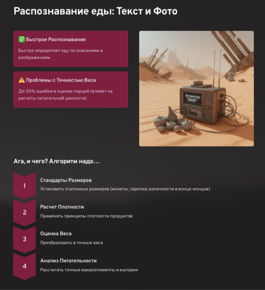 Эталонные объекты. Для точности порций использовались простые ориентиры — например, тарелки стандартного размера.