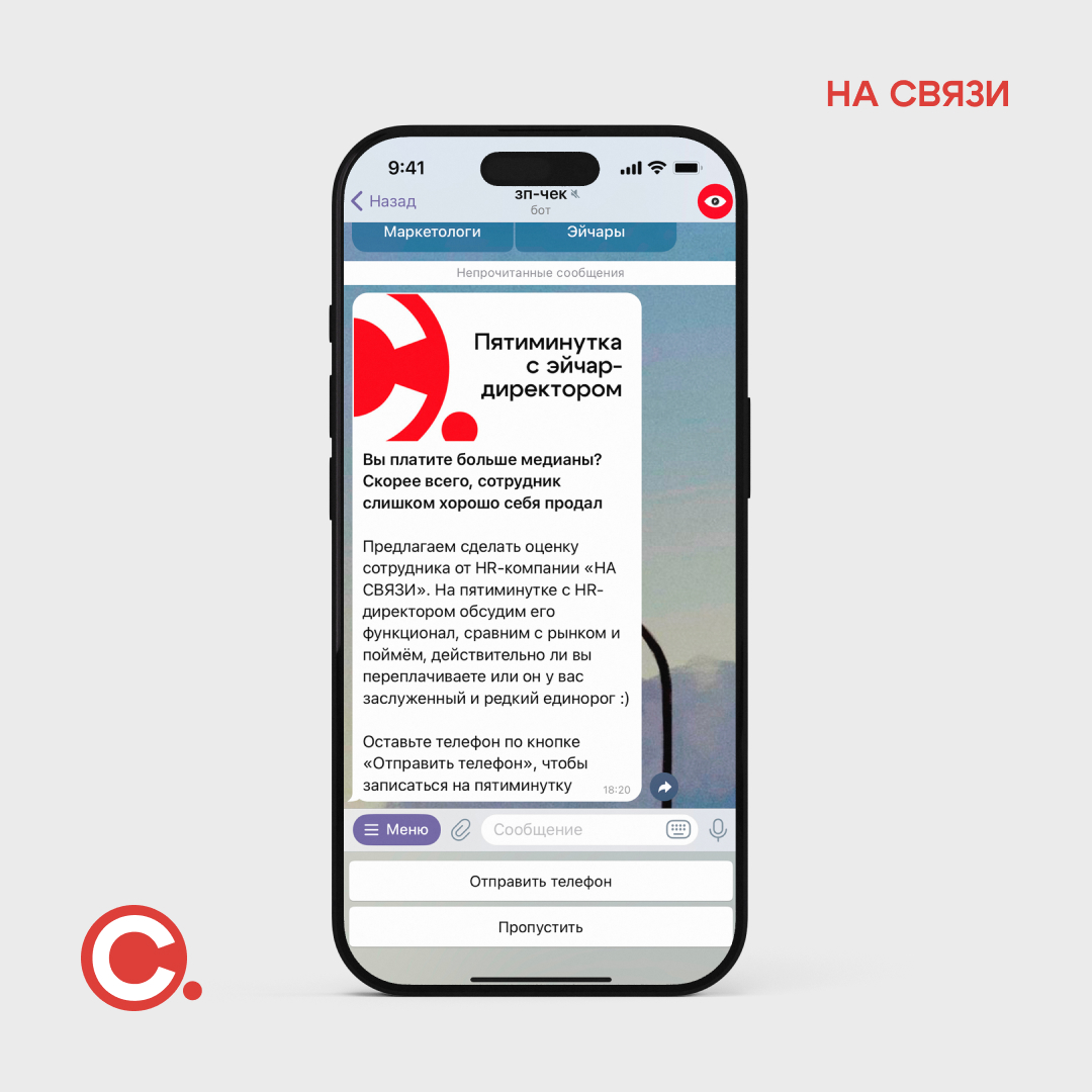 Перед нами стояла задача: привлечь подписчиков в телеграм-канал клиента — HR-компании «НА СВЯЗИ». Как мы её решили: создали полезного телеграм-бота «зп-чек», который выдаёт среднюю зарплату по диджитал-должностям. А чтобы получить результат, пользователь подписывался на канал компании.