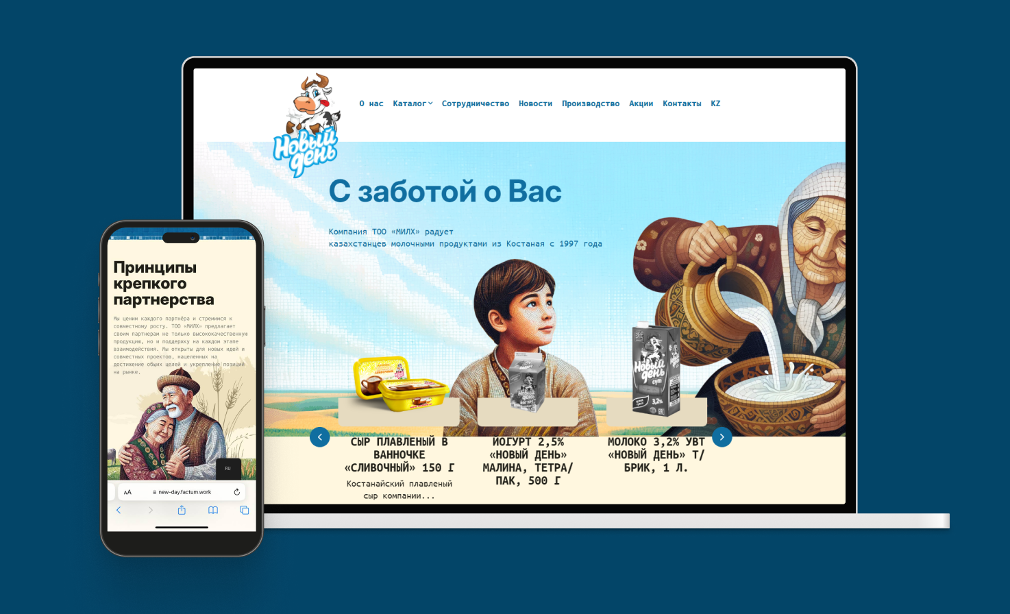 В 2024 году к нам обратился казахстанский бренд «Новый день» — производитель молочной продукции из Костаная. На рынке Костаная его знали, за пределами области — нет.