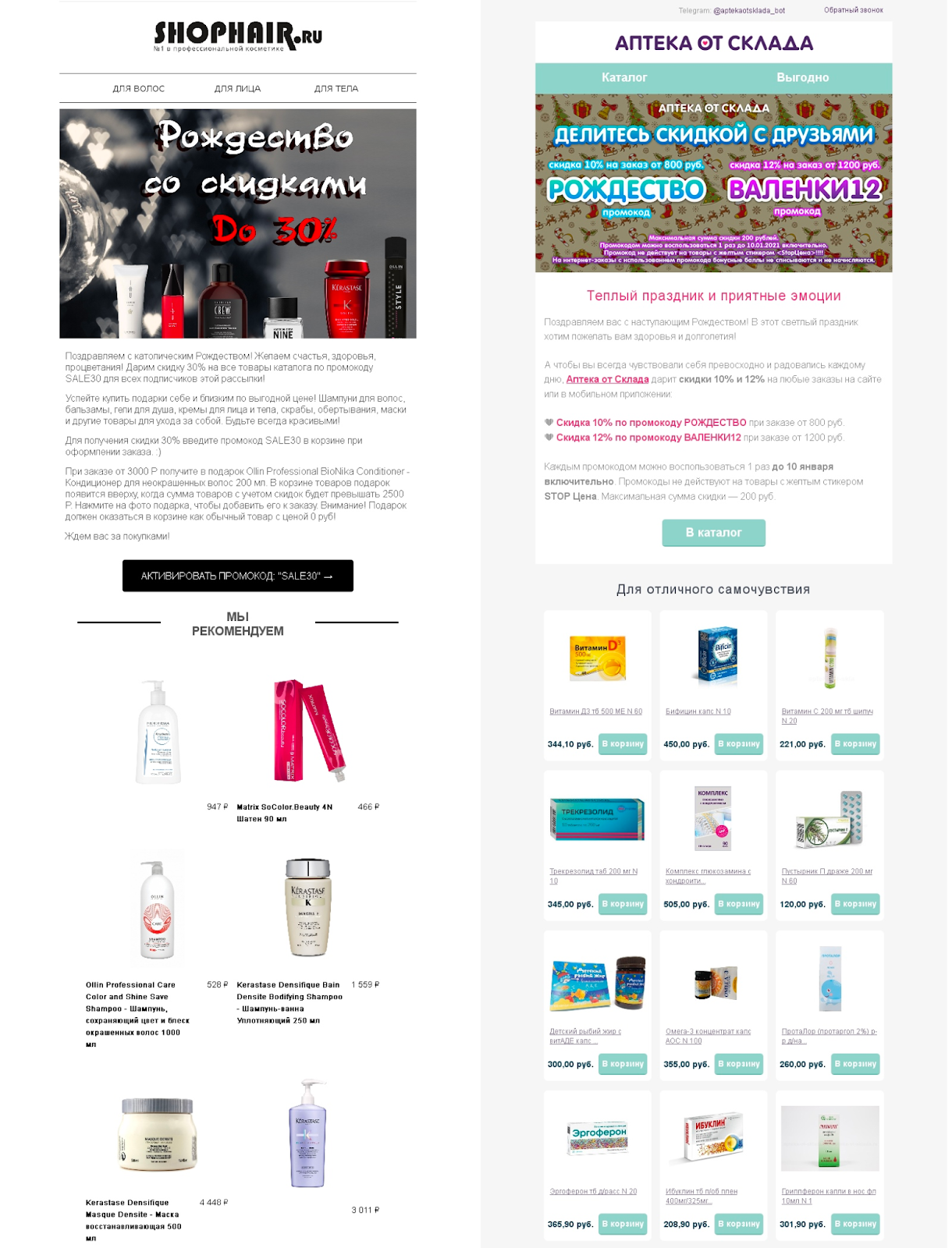 Реализация в email-рассылках: предложите праздничные подборки, рецепты, украшения.