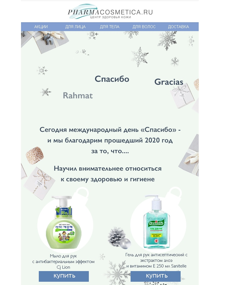 Реализация в email-рассылках: предложите зимние уходовые продукты, рекомендации по защите кожи.