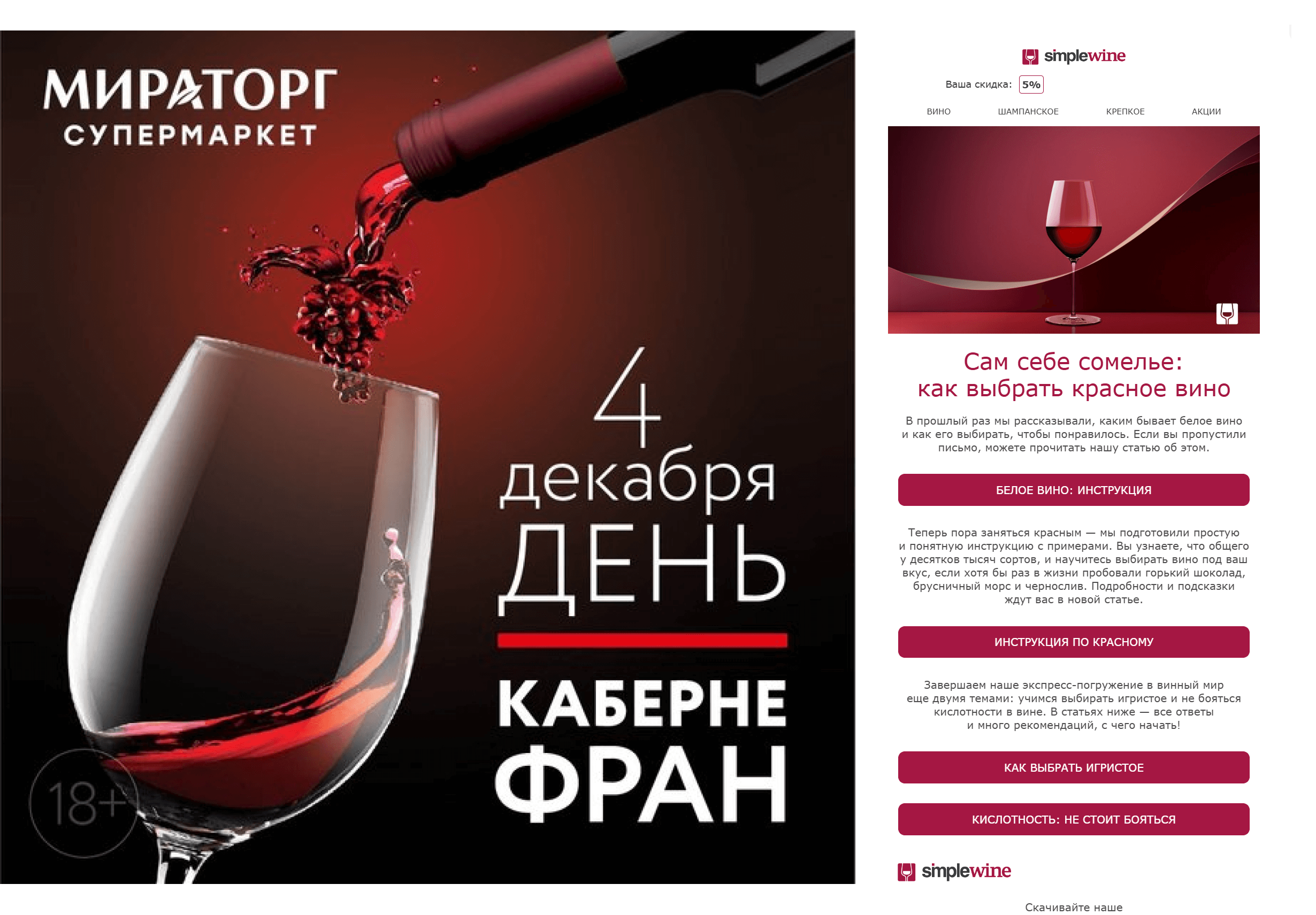 • Тема рассылки: «День Каберне Фран: открываем новые оттенки вкуса».