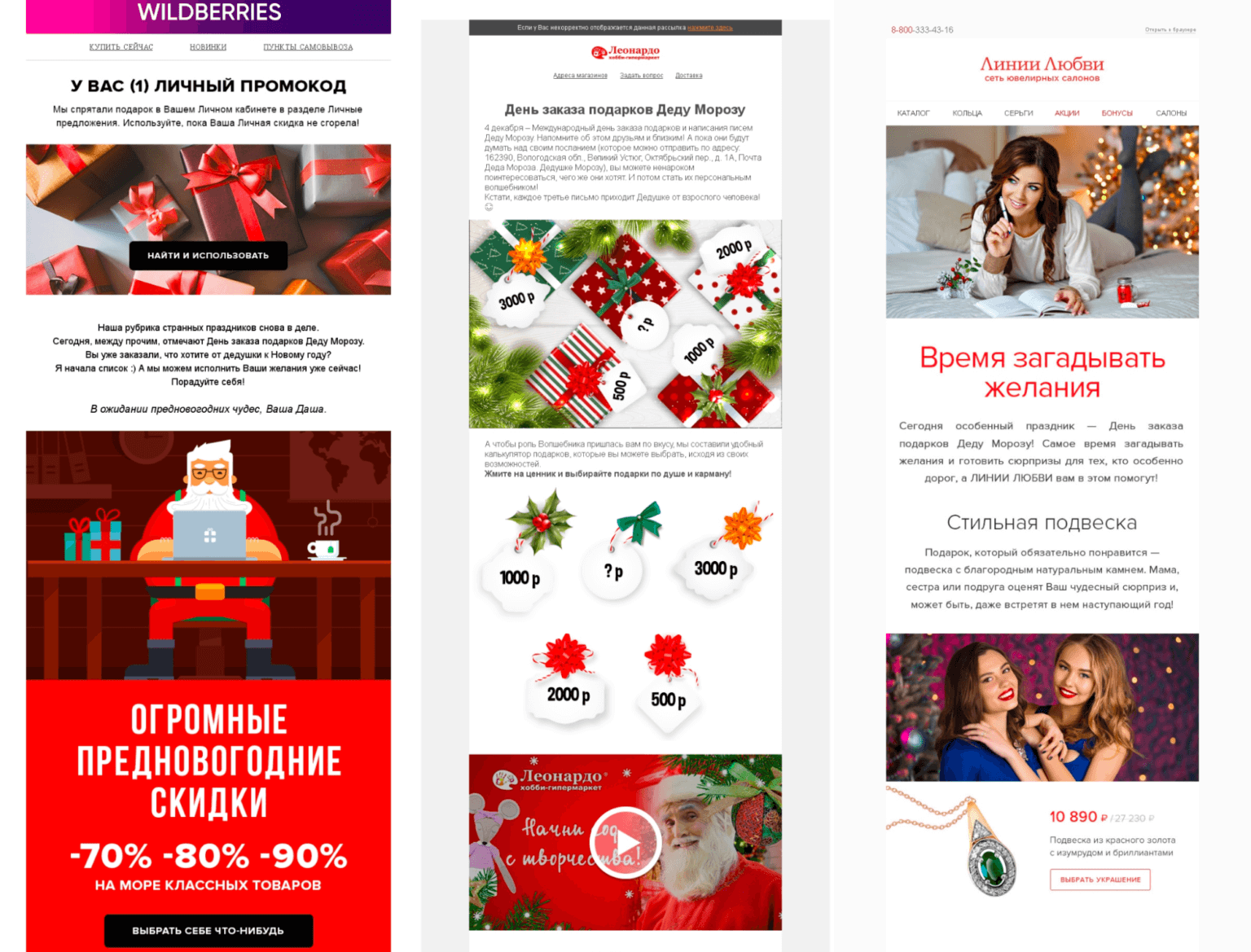 • Тема рассылки: «Время желаний: составляем письмо Деду Морозу».