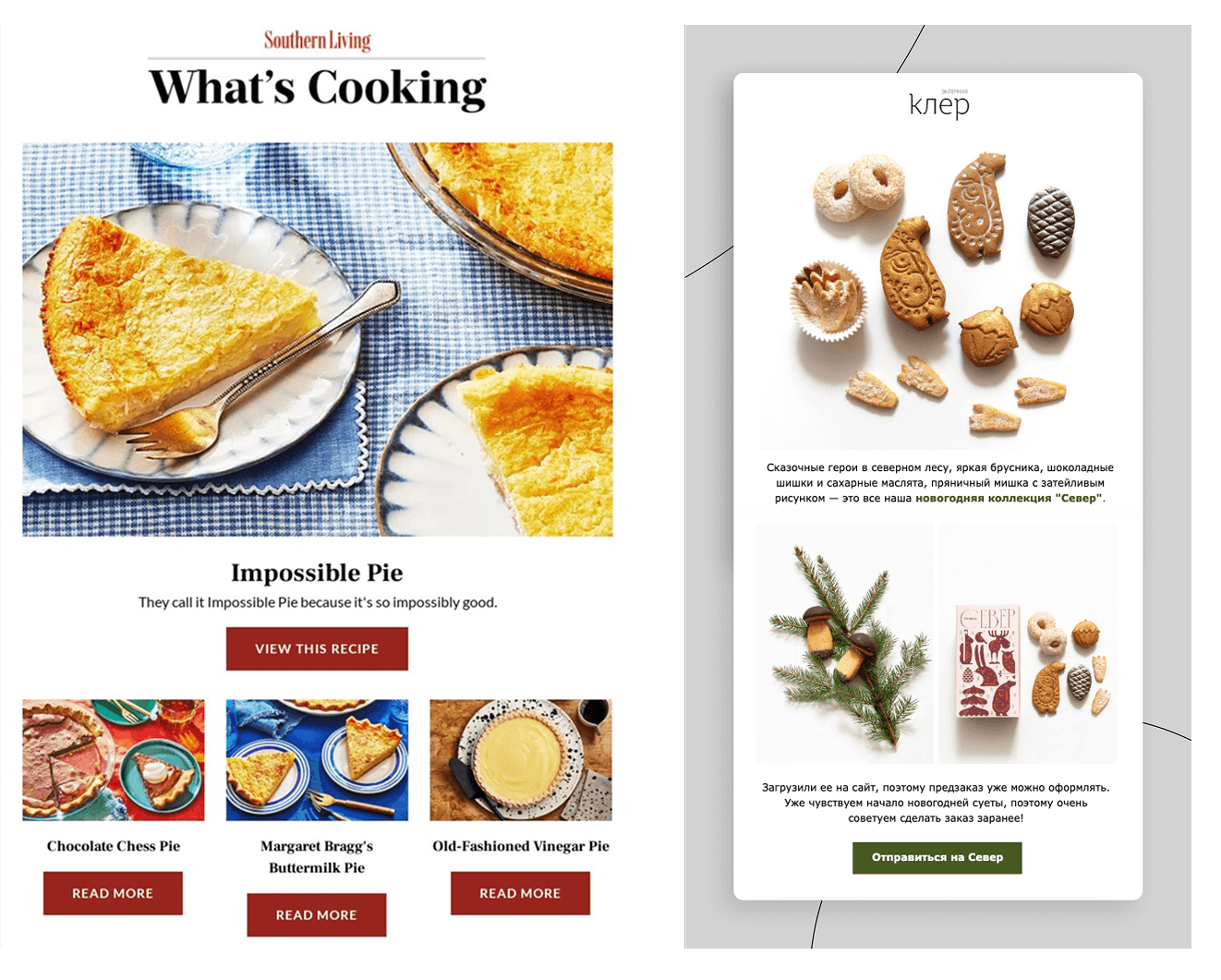 • Реализация в email-рассылках: предложите скидки на кондитерскую продукцию, рецепты, дегустации.