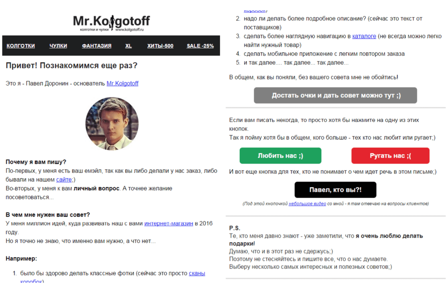 4. Автоматизация отношений. Да, эмоции можно автоматизировать. Например: клиент поставил оценку от 1 до 3, ему автоматически отправляется письмо «мы всё починим + бонус»; если клиент оценивает вашу работу или продукт от 4 до 5, то отправляется письмо «круто! ваш бонус за отзыв здесь + QR-код на площадки». Приятно? Очень!