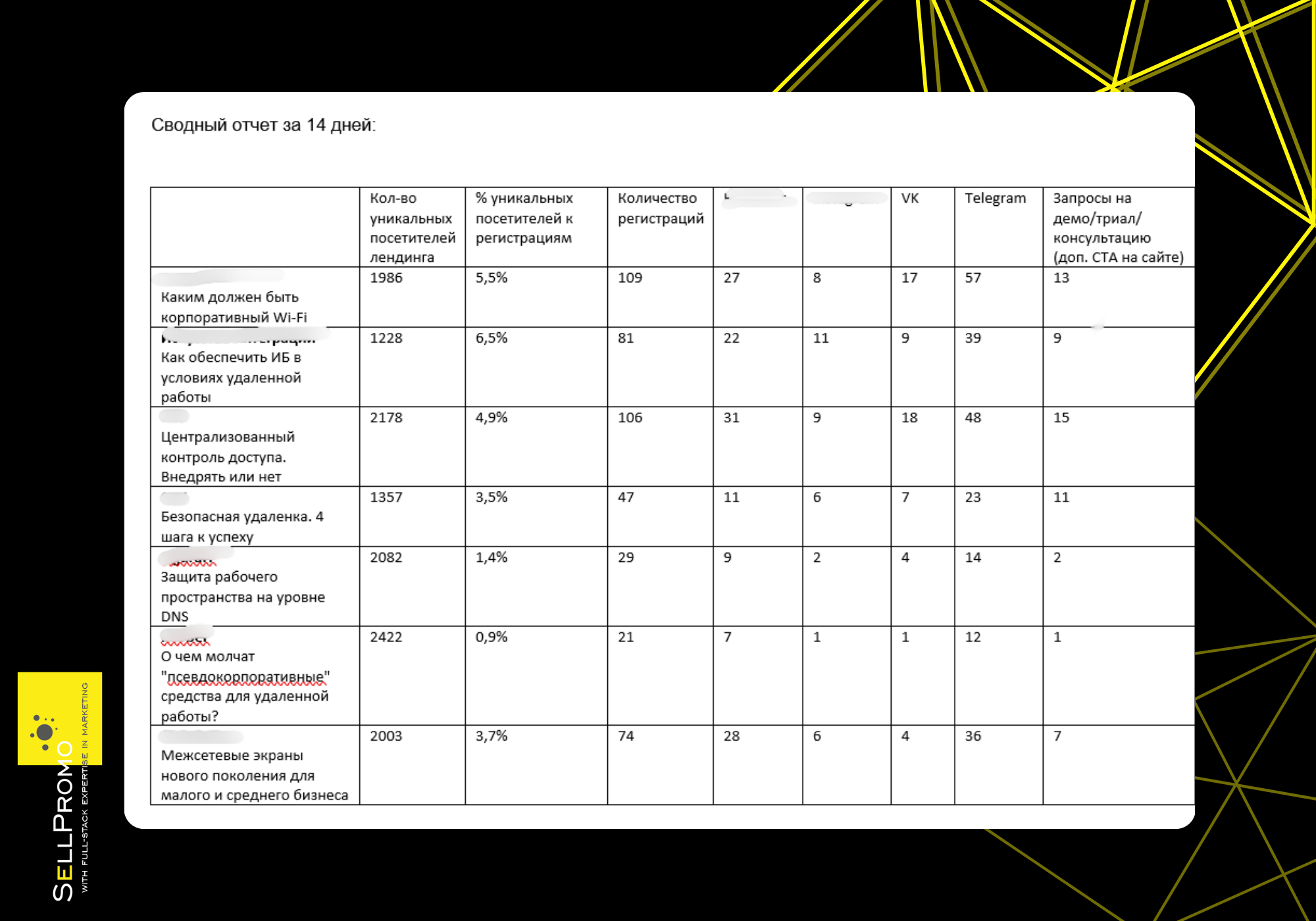 Рекламные креативы и материалы не создавались «с нуля» каждый раз. Часть контента адаптировалась из существующих ресурсов вендора и партнёров, часть создавалась заново под конкретные кейсы. Таким образом обеспечивался баланс между скоростью запуска и маркетинговым качеством.