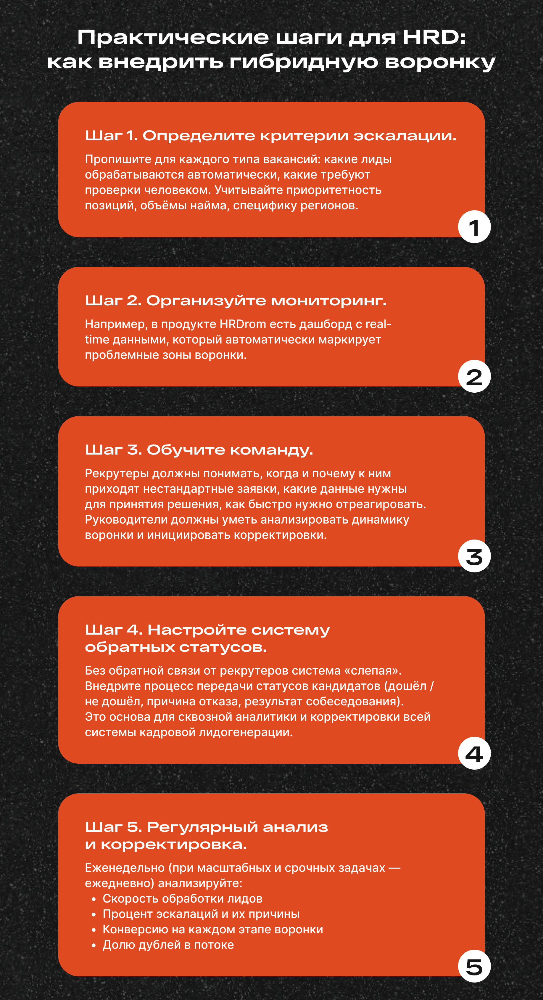 На основе данных корректируйте автоматические фильтры, правила эскалации, процессы работы с кандидатами.