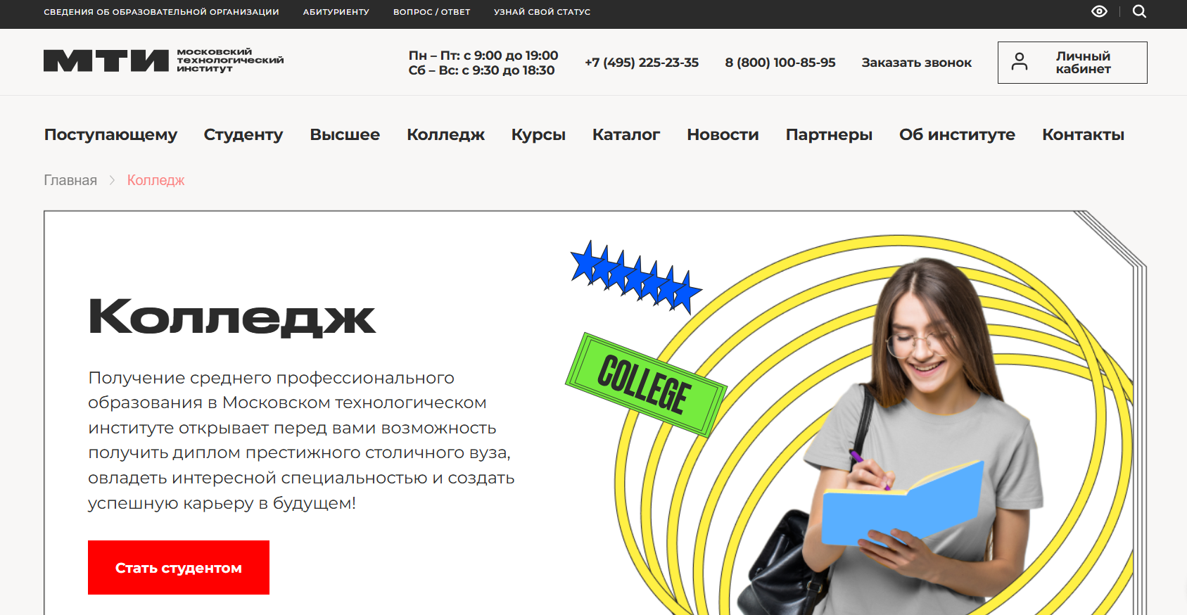 - Московский технологический институт (МТИ): государственный диплом + международное приложение и широкий выбор специальностей.