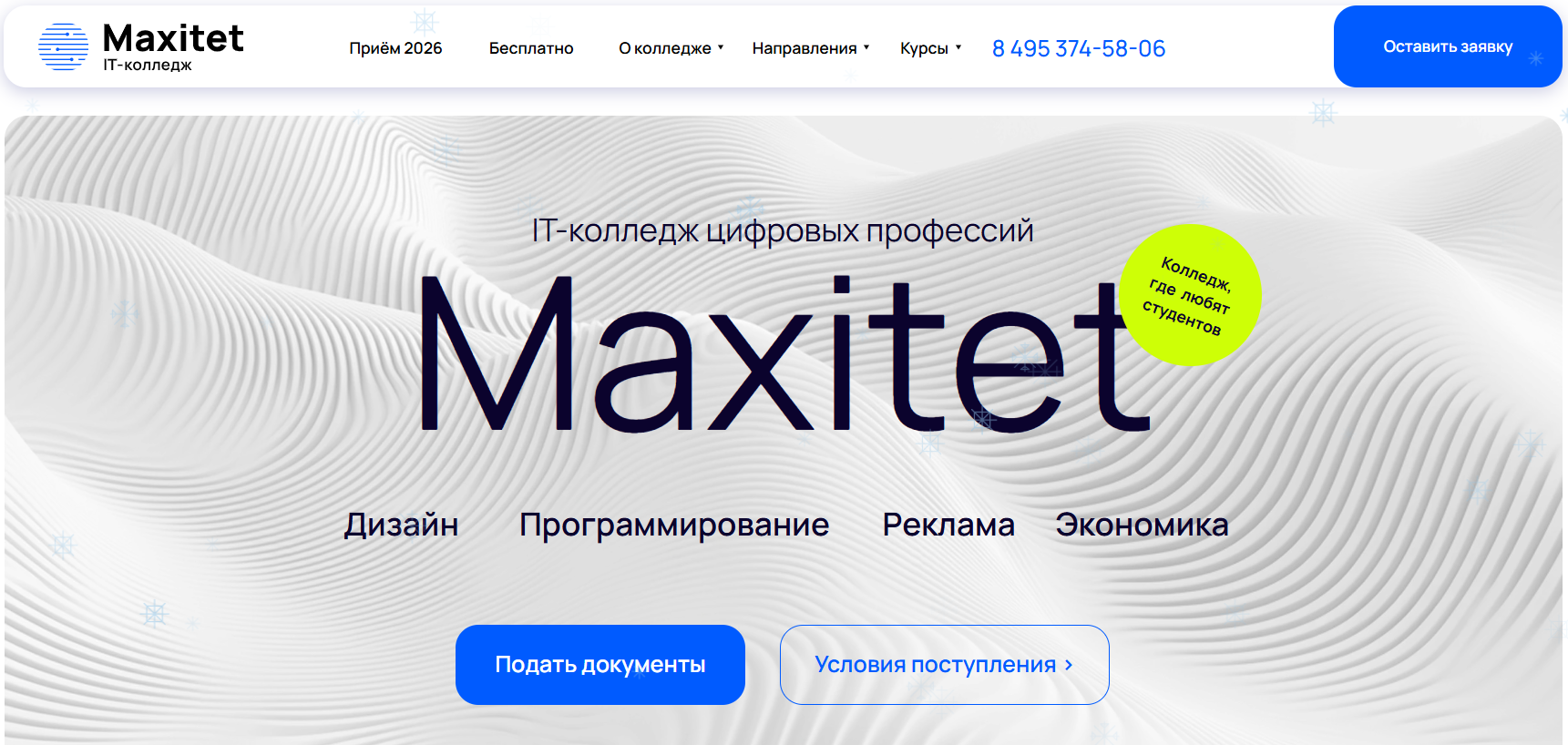 - Maxitet IT-колледж: практическая подготовка к IT-специальностям и поступление без конкурса аттестатов.