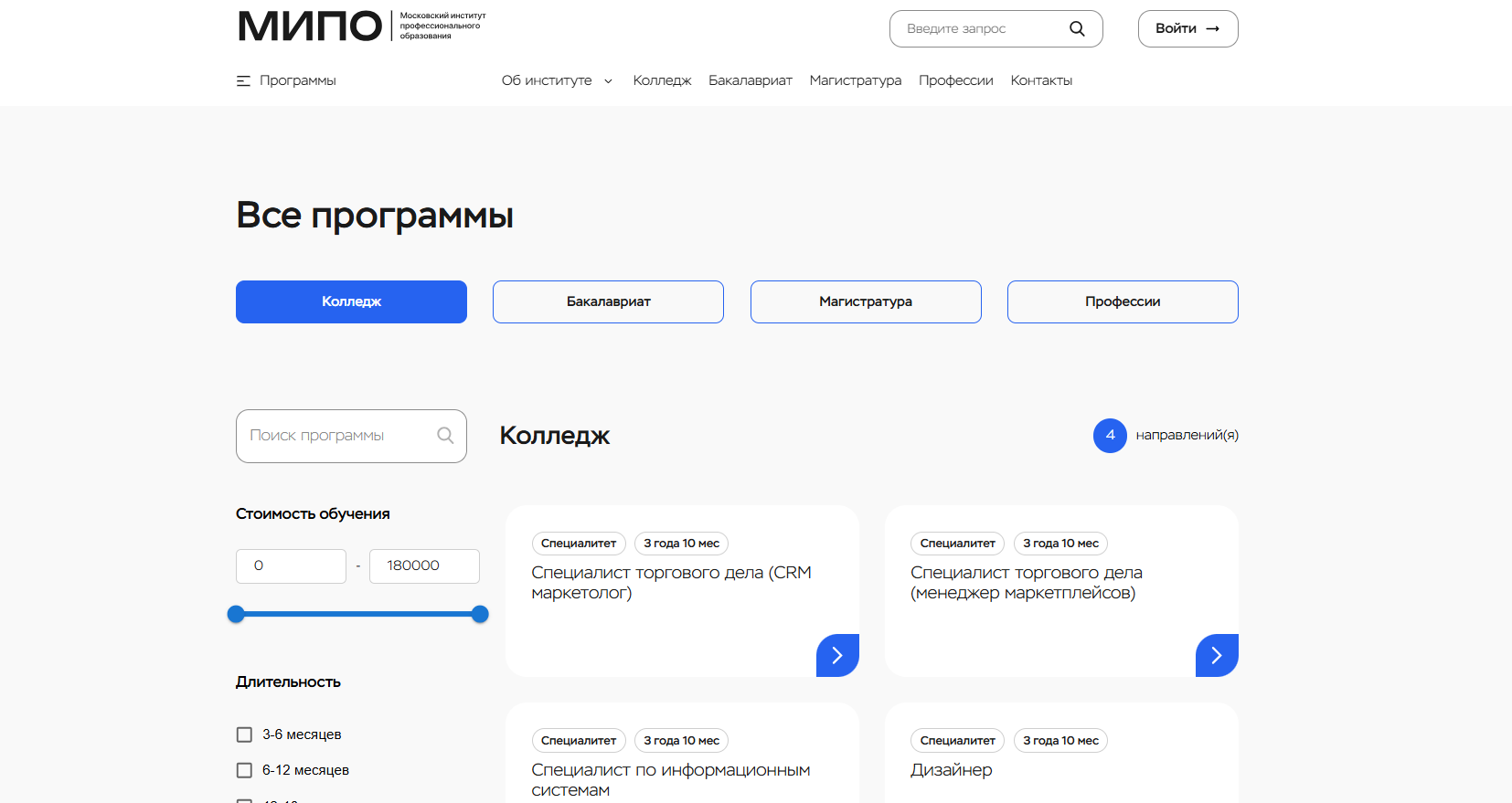 - Московский Институт Профессионального Образования (МИПО): более десятка направлений, программы с нулевой стоимостью и сильная поддержка трудоустройства.