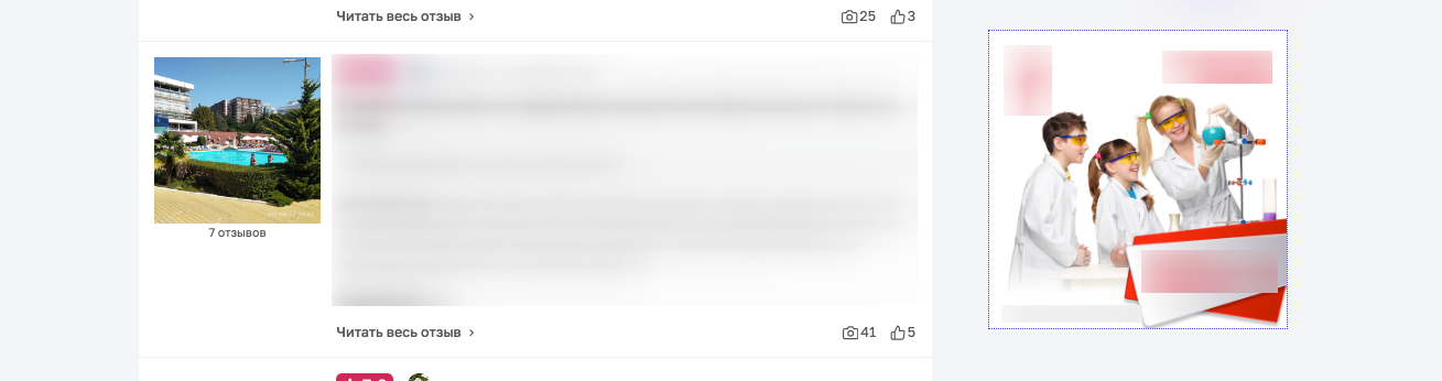 Otzovik предлагает услугу по удалению чужих рекламных баннеров на страницах вашего бренда. Да, стоимость зависит от трафика, но эффект — концентрация внимания только на ваших товарах и услугах.