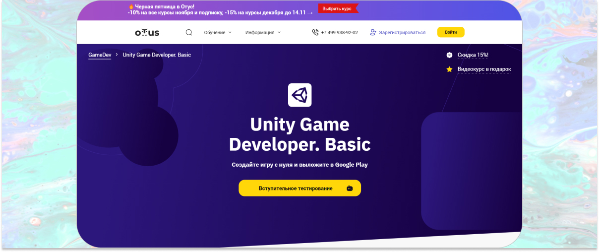 - «Unity Game Developer. Basic» от OTUS: обучение без предзаписанных уроков, подарят вступительный курс по программированию на C#.
