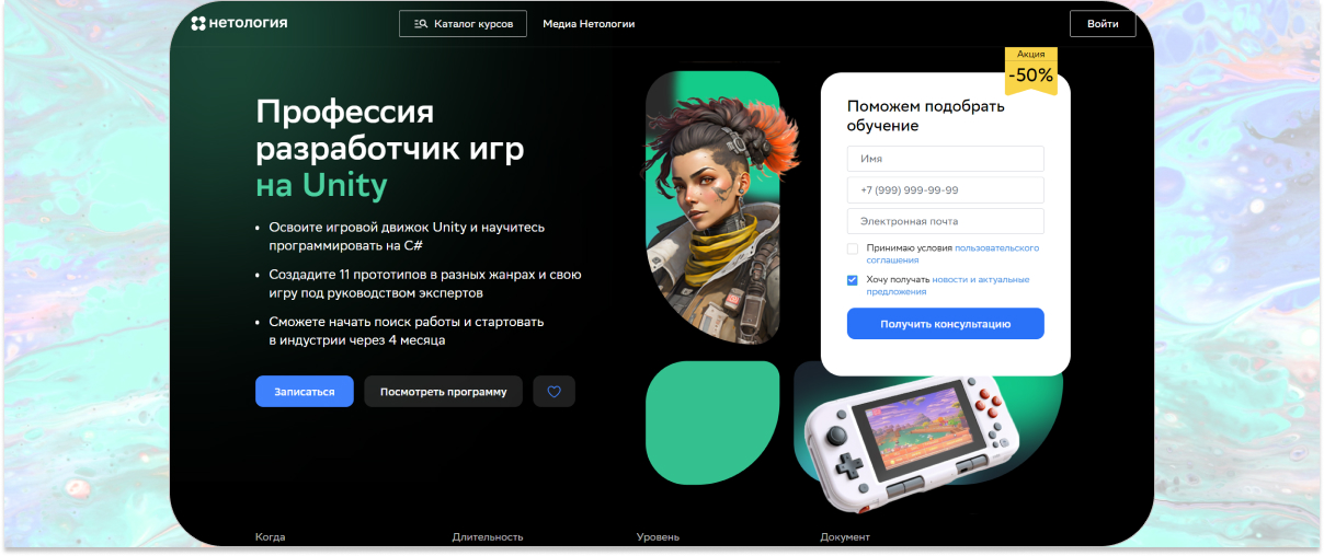 - «Профессия “Разработчик игр на Unity”» от «Нетологии»: искать работу можно через четыре месяца после начала обучения.