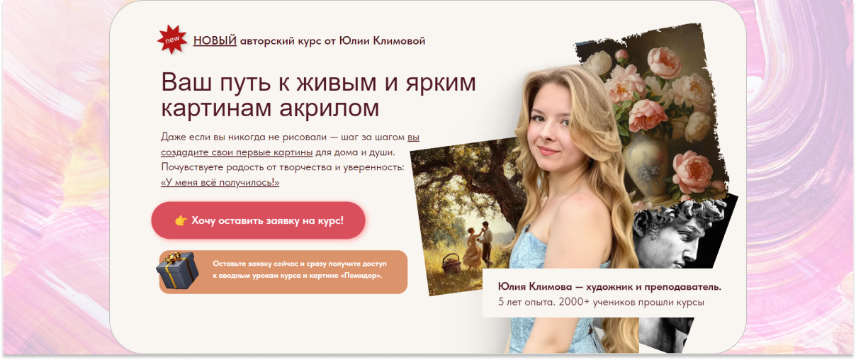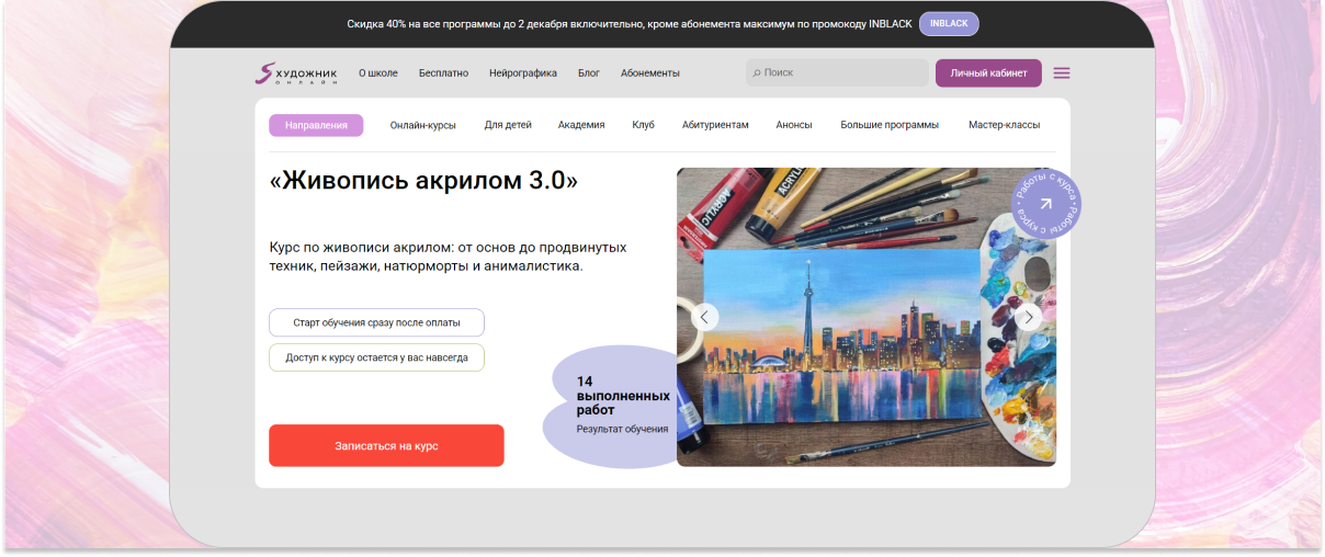 5. «Живопись акрилом 3.0» от школы «Художник Онлайн»: в программе основа и продвинутые техники.