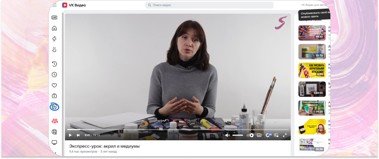 3. «Экспресс-урок: акрил и медиумы» от школы «Художник Онлайн»: короткий урок о необходимых материалах для рисования.