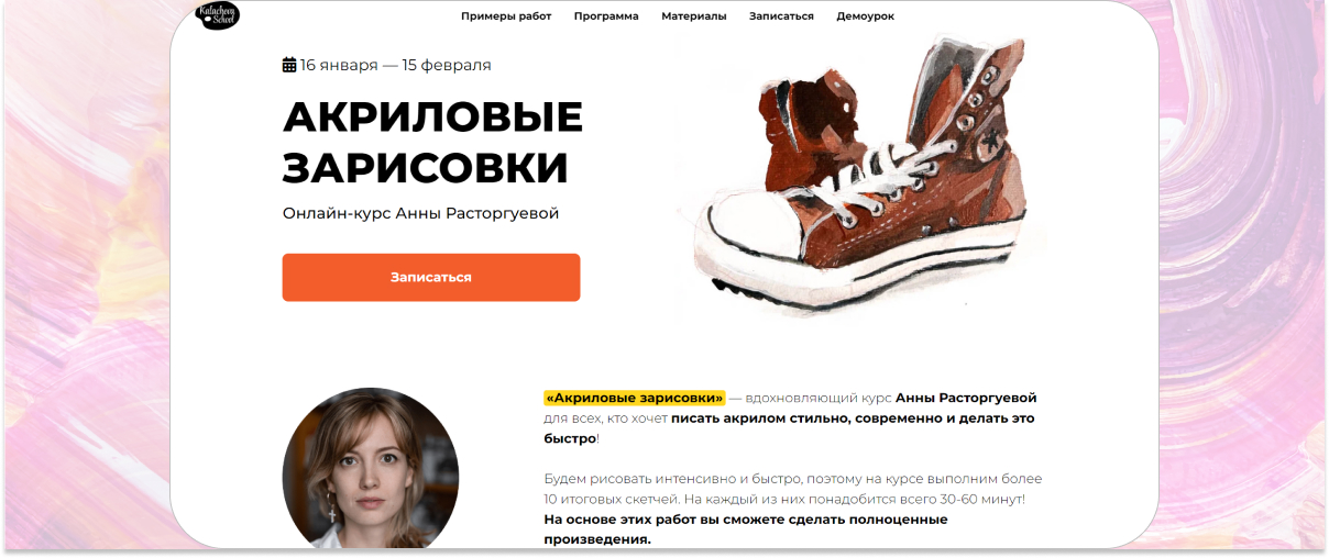 3. «Акриловые зарисовки» от KalachevaSchool: научат рисовать в быстром темпе.