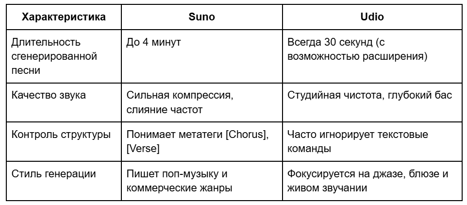 Сравнение алгоритмов создания треков в сервисах Suno и Udio